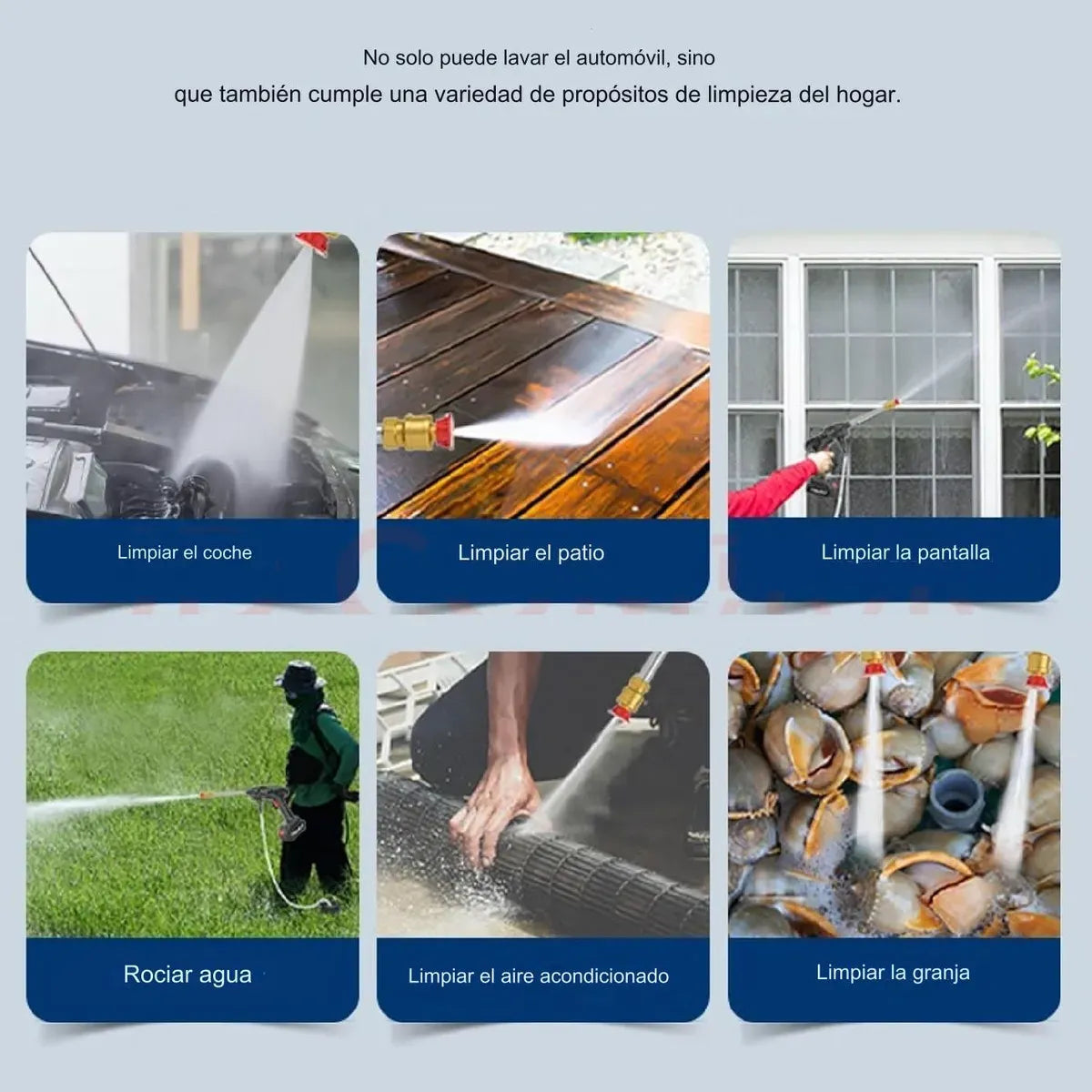 • Limpia fácilmente coches, paredes de hormigón, muebles de jardín, suelos de madera, ventanas y suciedad de la piscina.